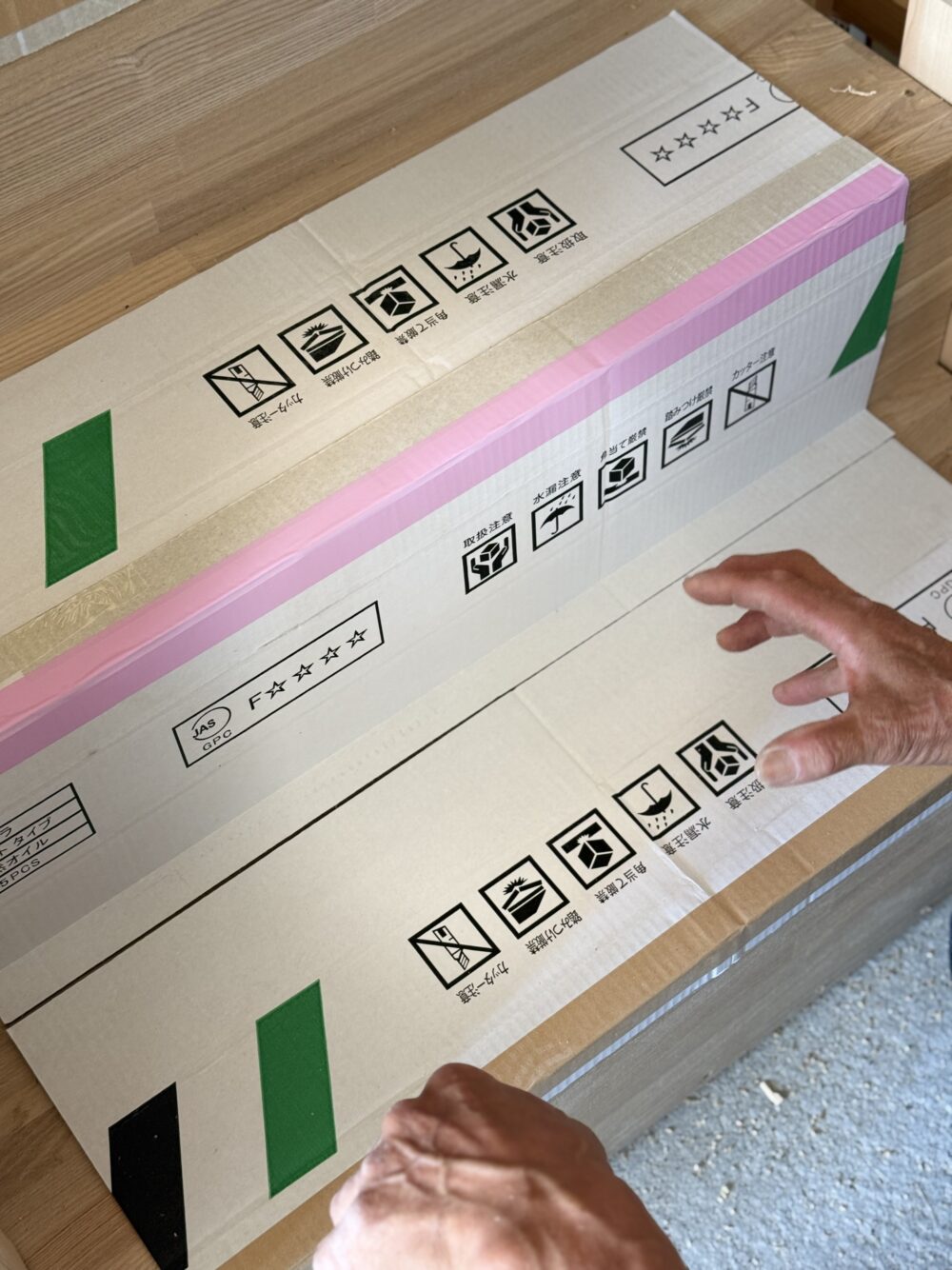 一方、リビングではあるベテラン大工がダンボールで何やら製作中。