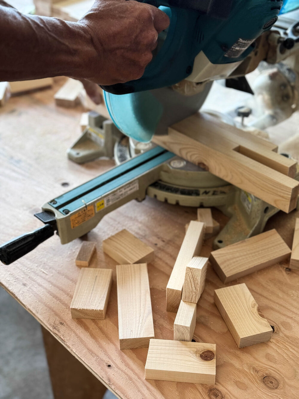 この作業は見た目以上に繊細で、1本1本の木材の寸法や角度をしっかり確認しながら施工していきます。