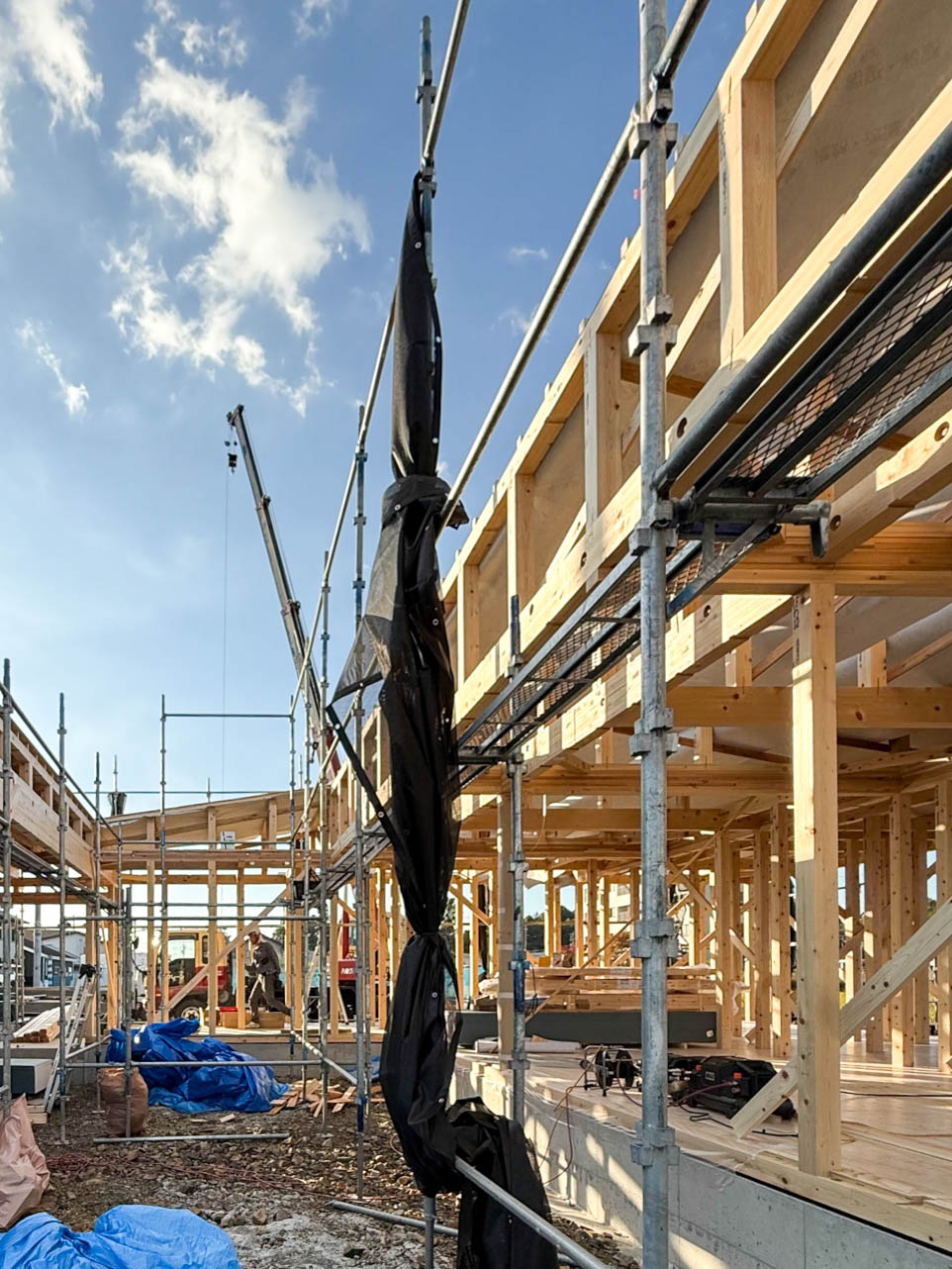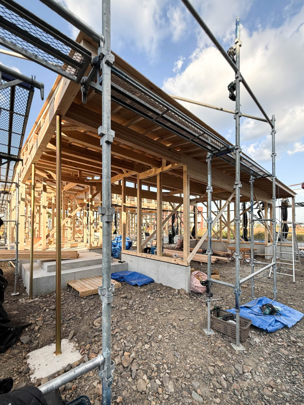 大工の手際の良さとチームワークも相まって安全かつ効率よく棟上げが完了しました。