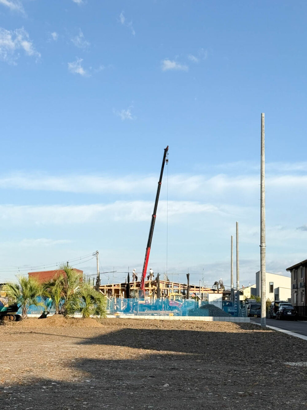 10月末の秋の爽やかな青空の下、前平の平屋が無事に上棟しました。