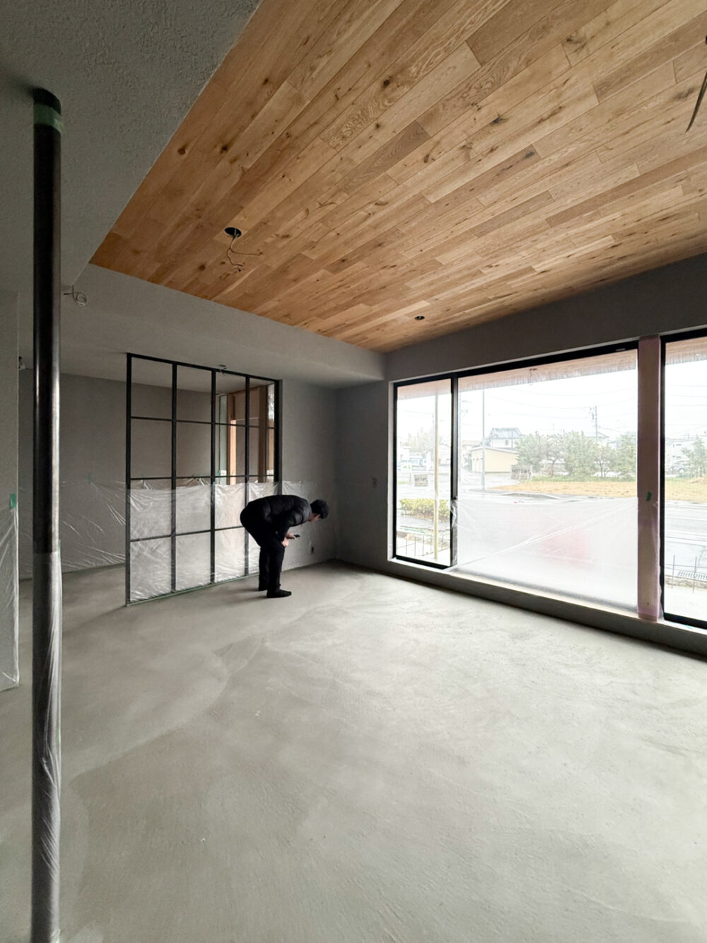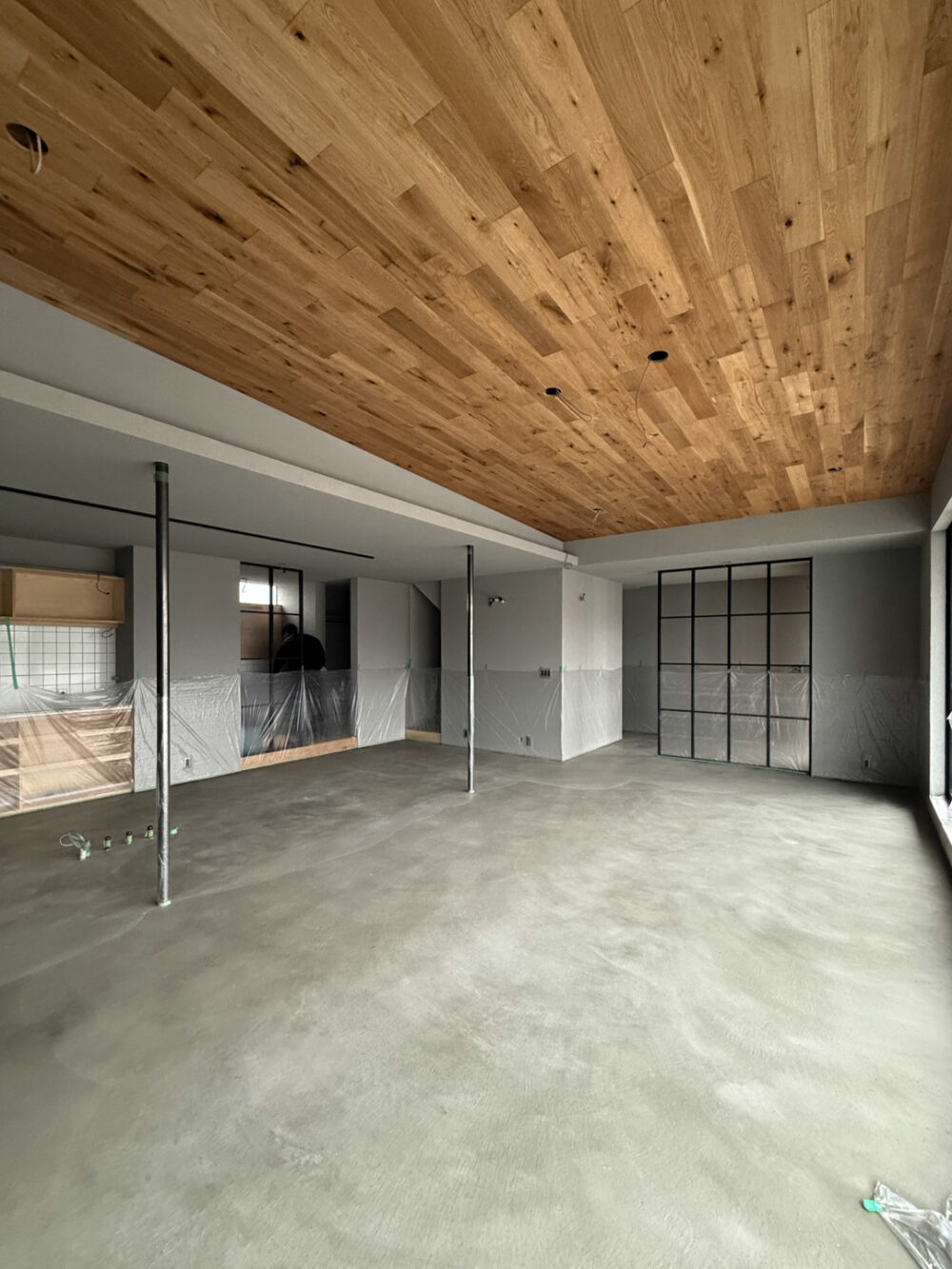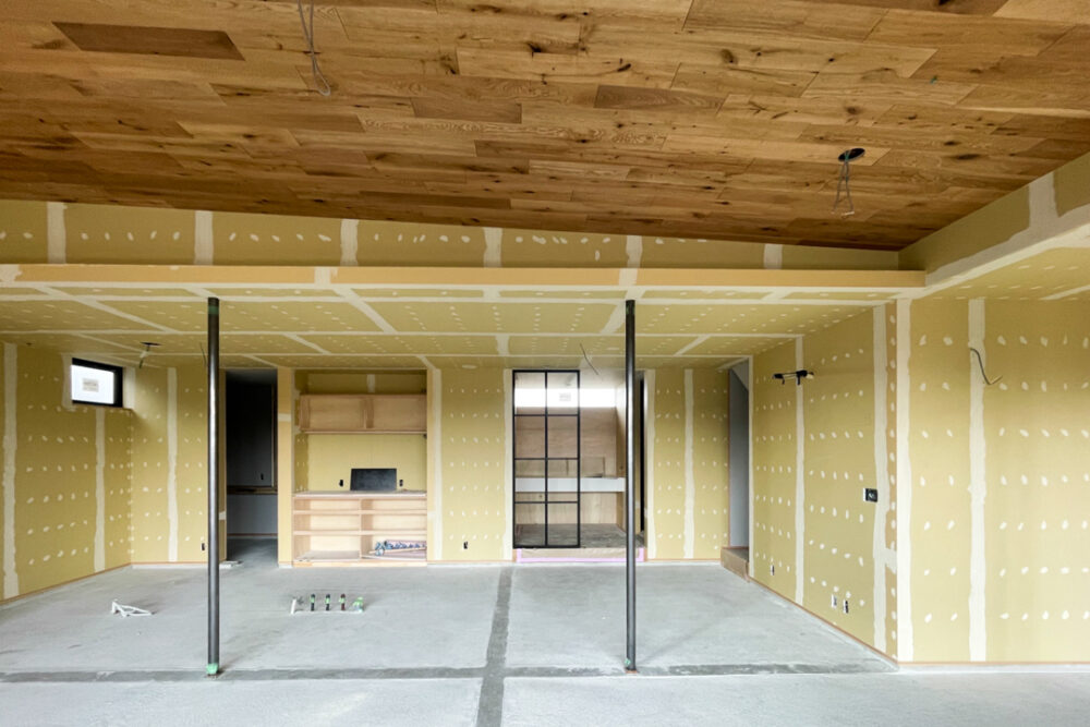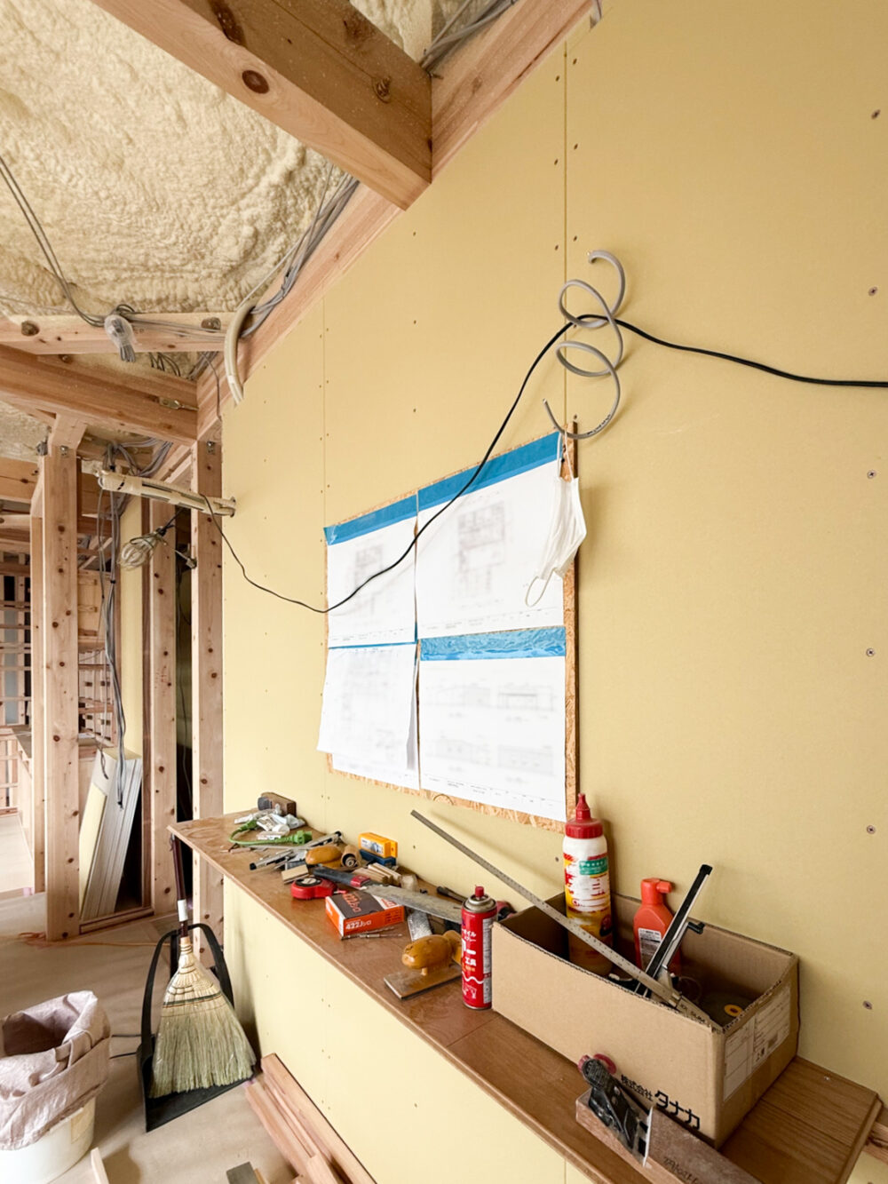 ボードの継ぎ目やビス穴も丁寧に処理され、壁面はなめらかで均一な下地に整っています。