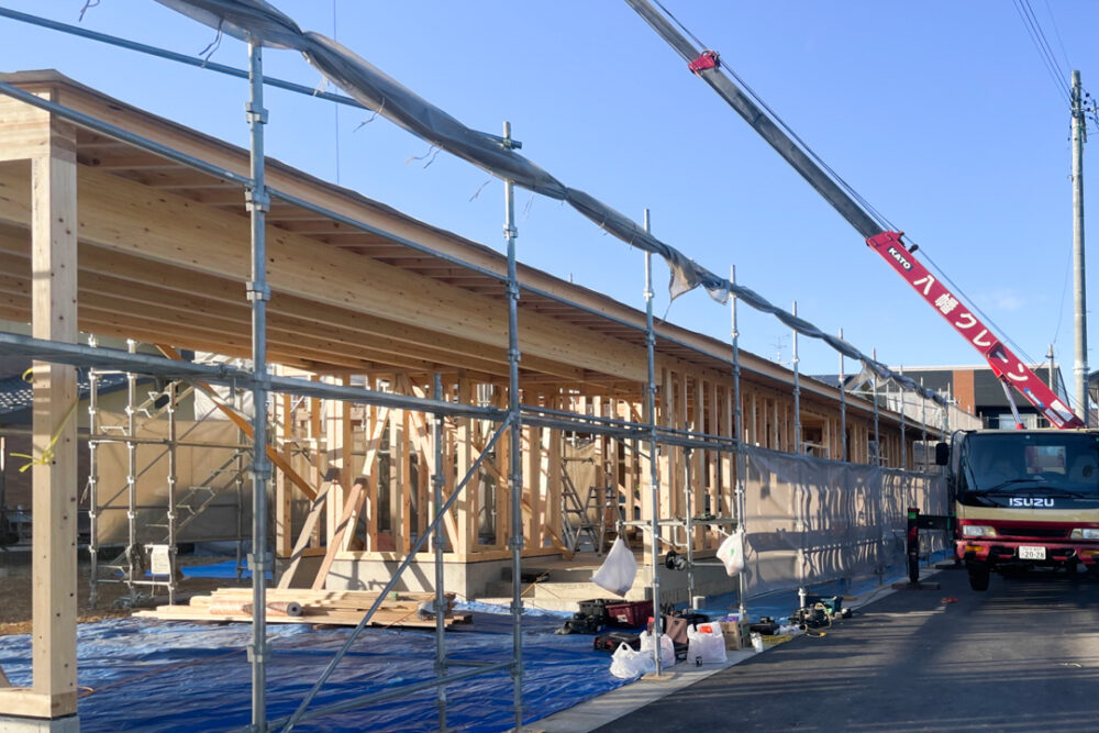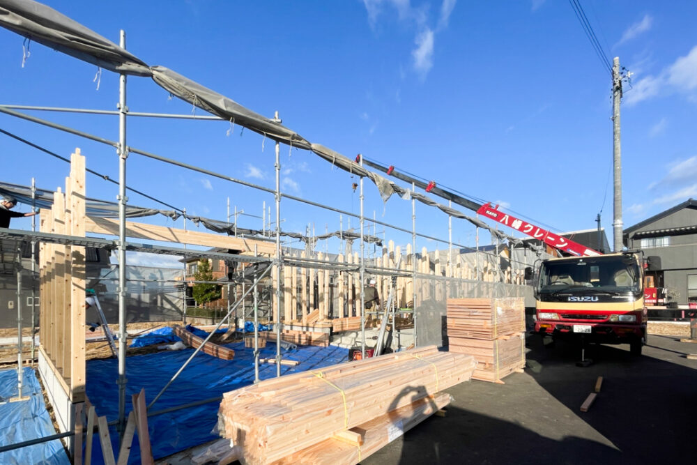 平屋の新築工事を手掛けさせていただく運びとなり、まもなく上棟を迎えます。