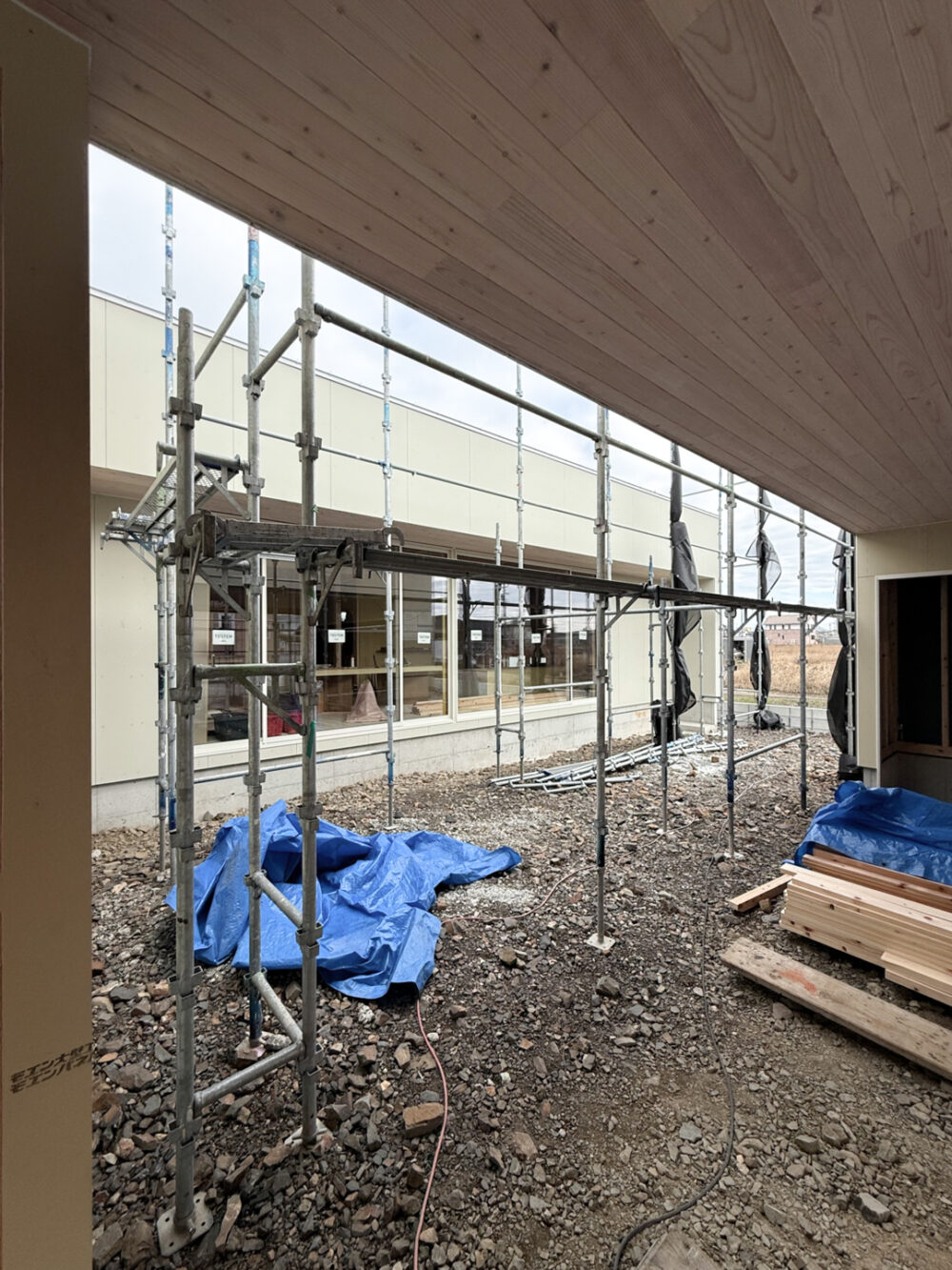 工事は、木工事が完了し、現在外壁塗装を行っています。