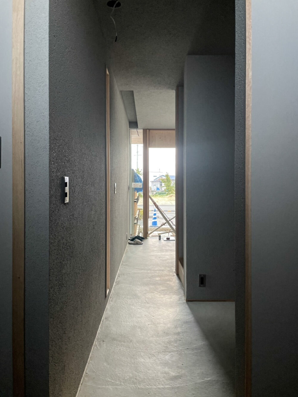 塗装待ちの土間空間。