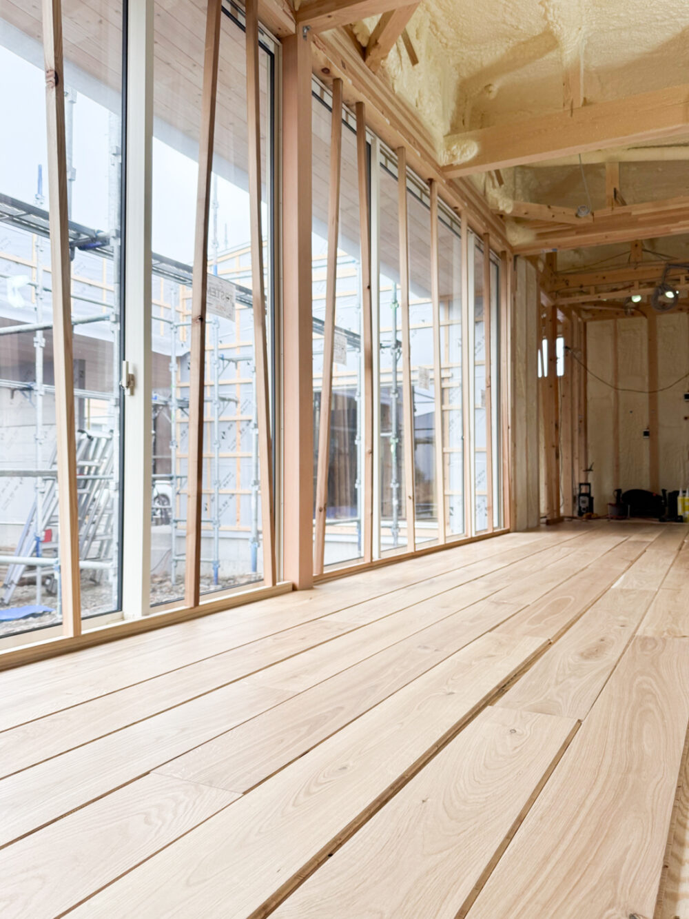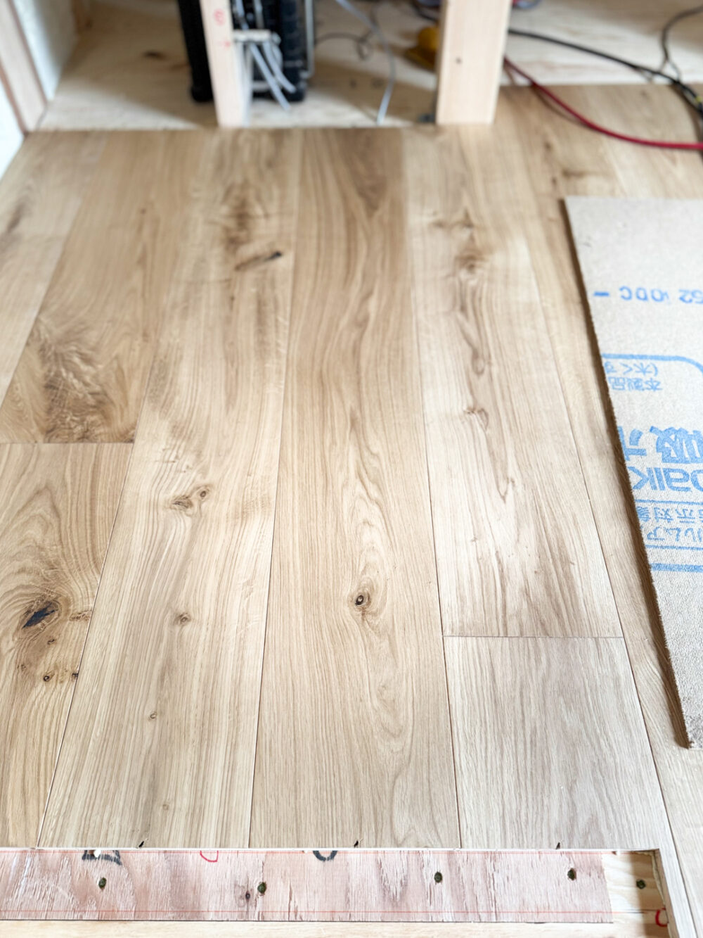 無垢フローリングの仮並べ。