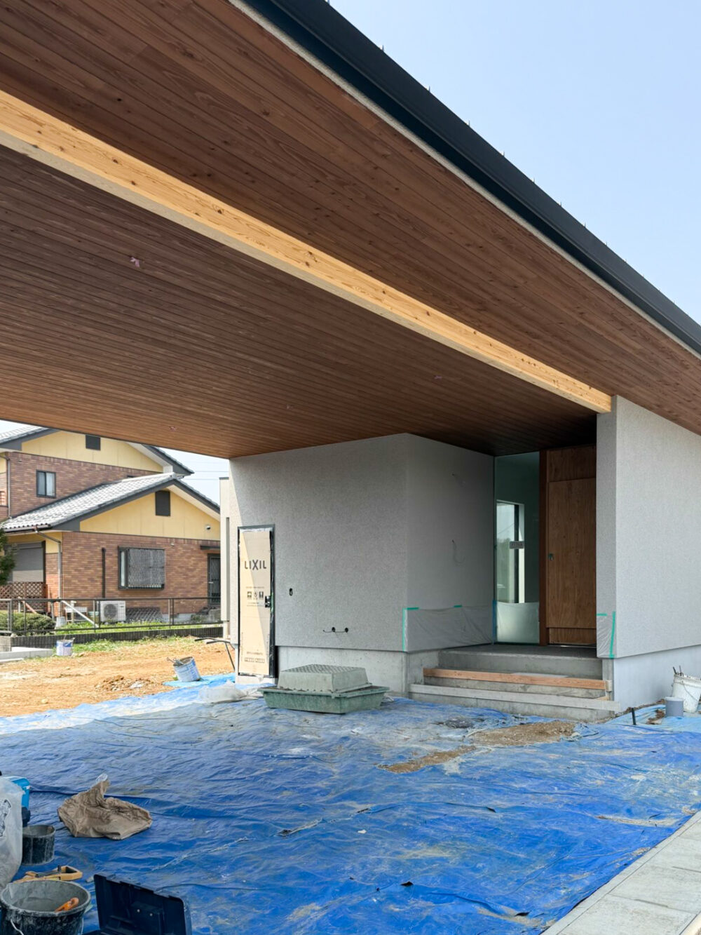外部は、外装が整い現在はブロック工事をおこない、