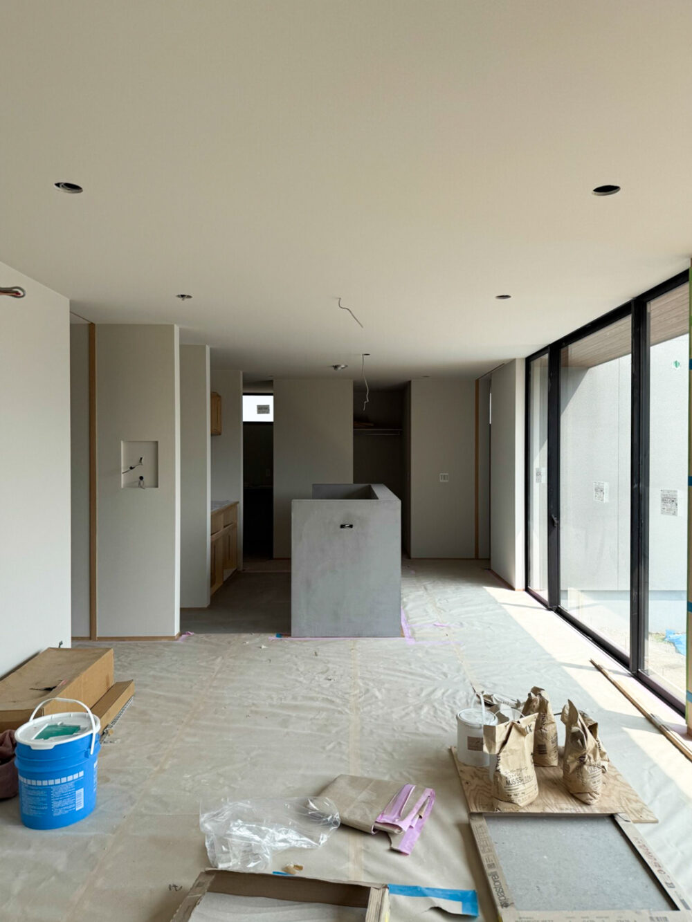 内部は、左官工事中。