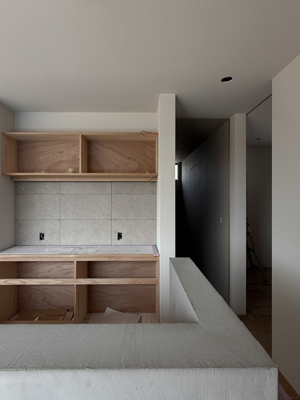 「伏見の平屋」モールテックスで仕上げるキッチン擁壁